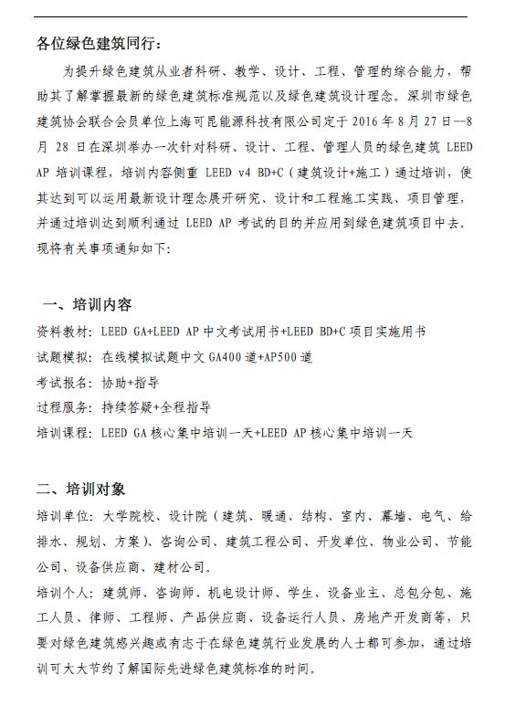 關(guān)于2016年度第二期LEED 培訓(xùn)的報(bào)名通知