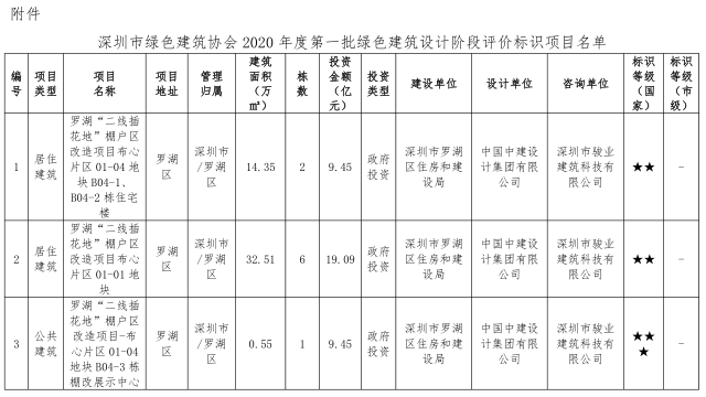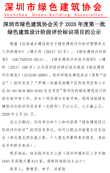 深圳市綠色建筑協(xié)會關于2020年度第一批綠色建筑評價標識項目的公示