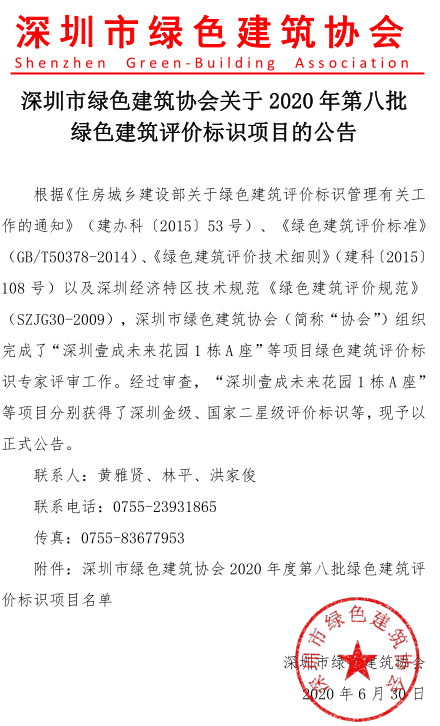 深圳市綠色建筑協(xié)會關于2020年度第八批綠色建筑評價標識項目的公告