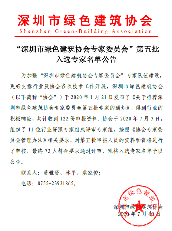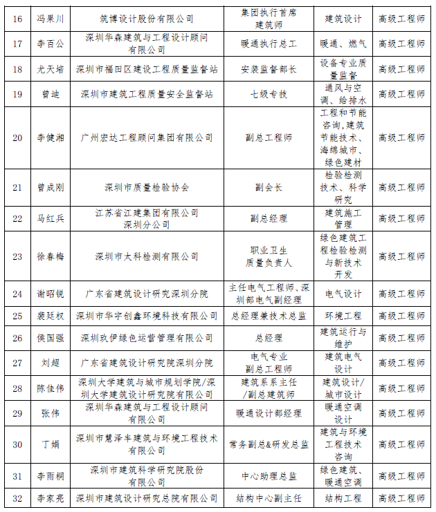 “深圳市綠色建筑協(xié)會(huì)專家委員會(huì)”第五批入選專家名單公告