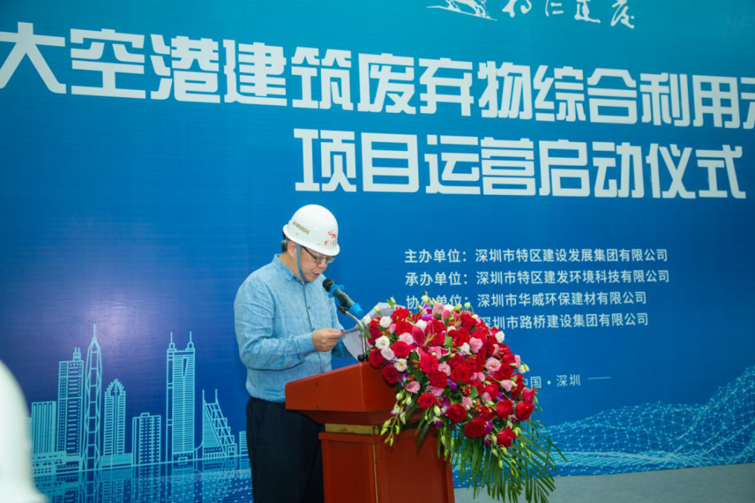 8 月 31 日,深圳市特區(qū)建發(fā)環(huán)境科技公司(簡稱“環(huán)境科技公司”)大空港建筑廢棄物綜合利用示范基地項目舉行運營啟動儀式。深圳市住建局鐘曉鴻副巡視員、深圳市住建局建廢辦劉向陽主任、特區(qū)建發(fā)集團李文雄董事長、特區(qū)建發(fā)集團劉超洋副總經(jīng)理、寶安區(qū)建筑廢棄物管理所鐘偉林所長、沙井街道辦企業(yè)創(chuàng)新服務(wù)中心陳麗芬副主任、深圳市綠色建筑協(xié)會王向昱秘書長等出席儀式。