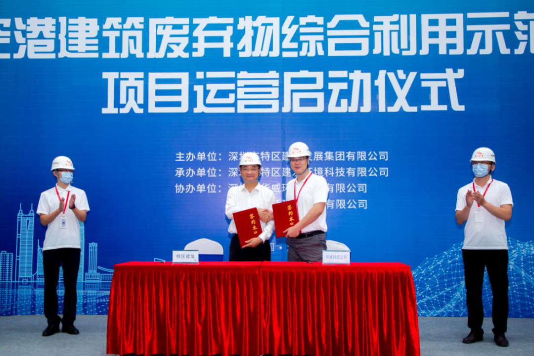 現(xiàn)場舉行了簽約儀式,大空港項目將由環(huán)境科技公司負責經(jīng)營管理,由環(huán)境科技公司控股企業(yè)華威公司負責處理拆除建廢生產(chǎn)線和再生砌塊生產(chǎn)線的具體生產(chǎn)工作。
