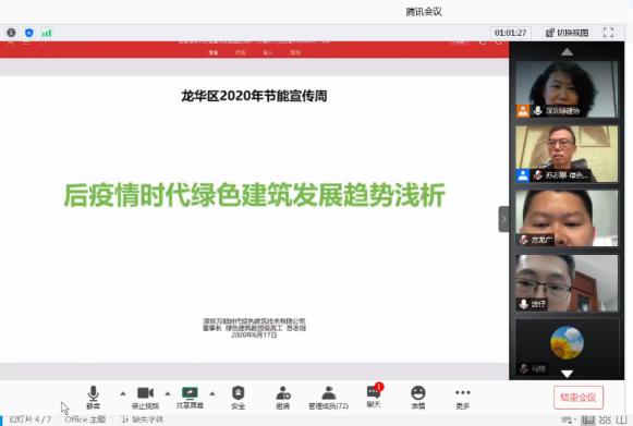 2020年6月17日,龍華區(qū)住房和建設(shè)局主辦、深圳市綠色建筑協(xié)會(huì)承辦的“提升綠建品質(zhì),打造健康建筑——龍華區(qū)2020年節(jié)能宣傳周綠色建筑‘云上’講堂”舉辦。龍華區(qū)建設(shè)系統(tǒng)管理和技術(shù)人員、綠色建筑企事業(yè)單位從業(yè)人員、在建項(xiàng)目管理及施工人員和其他群眾等百余人參加活動(dòng)。龍華區(qū)住房和建設(shè)局建設(shè)科技與建筑廢棄物管理科汪波主持、市綠色建筑協(xié)會(huì)秘書長(zhǎng)王向昱出席活動(dòng)并講話。