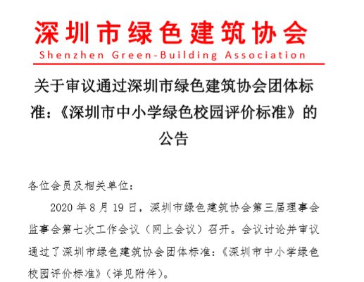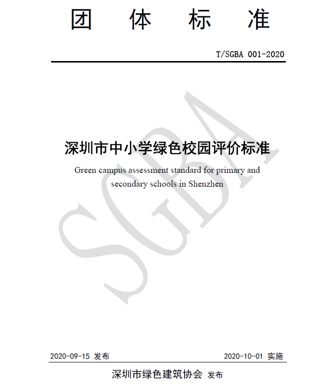 9月15日,深圳市綠色建筑協會首部團體標準《深圳市中小學綠色校園評價標準》(簡稱《標準》)發(fā)布,并將于2020年10月1日起正式實施。