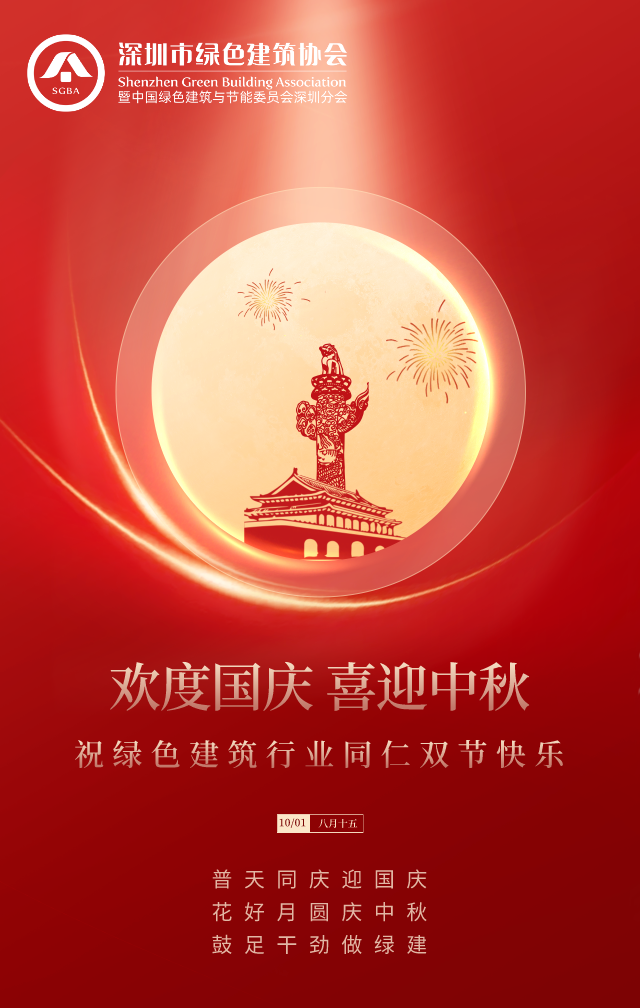 深圳市綠色建筑協(xié)會祝全體會員中秋、國慶雙節(jié)快樂!感謝大家一直以來對協(xié)會和行業(yè)工作的支持!