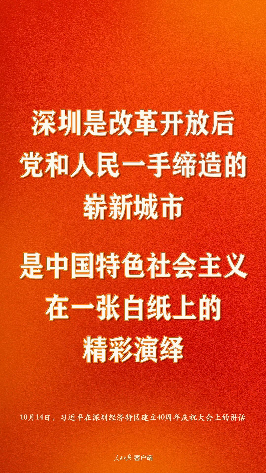 深圳經(jīng)濟(jì)特區(qū)建立40周年慶祝大會(huì)14日上午在廣東省深圳市隆重舉行。中共中央總書記、國(guó)家主席、中央軍委主席習(xí)近平在會(huì)上發(fā)表重要講話,強(qiáng)調(diào)要高舉中國(guó)特色社會(huì)主義偉大旗幟,統(tǒng)籌推進(jìn)“五位一體”總體布局,協(xié)調(diào)推進(jìn)“四個(gè)全面”戰(zhàn)略布局,從我國(guó)進(jìn)入新發(fā)展階段大局出發(fā),落實(shí)新發(fā)展理念,緊扣推動(dòng)高質(zhì)量發(fā)展、構(gòu)建新發(fā)展格局,以一往無前的奮斗姿態(tài)、風(fēng)雨無阻的精神狀態(tài),改革不停頓,開放不止步,在更高起點(diǎn)上推進(jìn)改革開放,推動(dòng)經(jīng)濟(jì)特區(qū)工作開創(chuàng)新局面,為全面建設(shè)社會(huì)主義現(xiàn)代化國(guó)家、實(shí)現(xiàn)第二個(gè)百年奮斗目標(biāo)作出新的更大的貢獻(xiàn)。