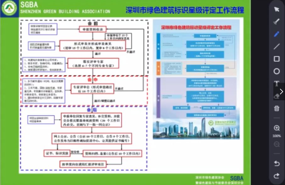 光明區(qū)是“國家綠色生態(tài)示范城區(qū)”,在城市快速發(fā)展過程中,堅持政府引領(lǐng)、規(guī)劃先導(dǎo)、創(chuàng)新驅(qū)動、綠色低碳的發(fā)展路徑,推動綠色建筑有序發(fā)展。本次“云”培訓(xùn)共開展3場,協(xié)會邀請業(yè)內(nèi)專家分別從國家綠色建筑標(biāo)準(zhǔn)、近零能耗建筑、海綿城市、裝配式建筑、綠色建筑標(biāo)識申報流程等方面進(jìn)行解讀。