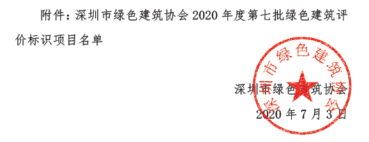 深圳市綠色建筑協(xié)會關(guān)于2020年度第七批綠色建筑設(shè)計(jì)階段評價標(biāo)識項(xiàng)目的公示