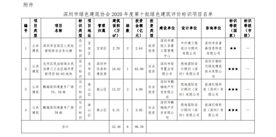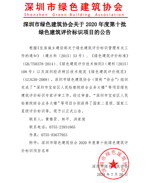深圳市綠色建筑協(xié)會關(guān)于2020年度第十批綠色建筑評價標識項目的公告