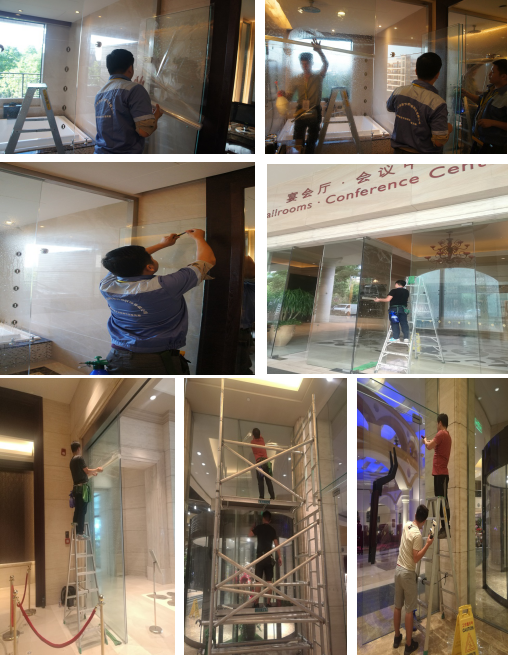 運用高精度電解質(zhì)濺射噴涂法,由PET提煉而成的透明強度復合聚酯纖維內(nèi)入金屬原子層,俗稱“安全防爆膜”,具有高透光性(可見光透過率86%以上),抗拉強度1700kg/cm2,拉伸系數(shù)160%,抗強酸、抗強堿,在高溫下也能保持物理性能的良好狀態(tài);厚度規(guī)格從4mil-16mil,安防性能從普通防爆抗撞擊至最高防彈級別。特殊處理的電磁敏感膠層,抗剝離強度高,組成一個玻璃薄膜保護系統(tǒng),增強玻璃強度3-9倍,可有效防止玻璃碎片飛濺,保護幼兒園、醫(yī)院、商場、學校、酒店、地鐵等公共設施建筑內(nèi)外的人員不受飛濺的玻璃碎片的危害;強大的抗撞擊能力,可有效阻止不法人員對博物館、銀行、珠寶店、政府機關等重要場所的違法入侵;同時也是應對暴雨、臺風、地震等自然災害對室內(nèi)造成破壞的有力手段。優(yōu)點:施工方便,不改變玻璃規(guī)格,不影響室內(nèi)采光,安全環(huán)保。