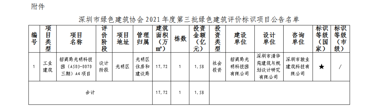 深圳市綠色建筑協(xié)會(huì)關(guān)于2021年第三批綠色建筑評(píng)價(jià)標(biāo)識(shí)項(xiàng)目的公告