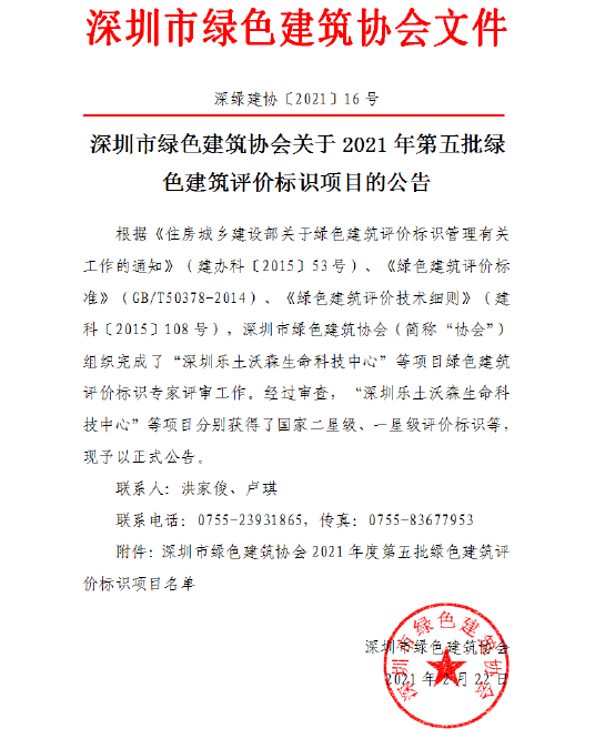 深圳市綠色建筑協(xié)會關(guān)于2021年第五批綠色建筑評價標(biāo)識項目的公告