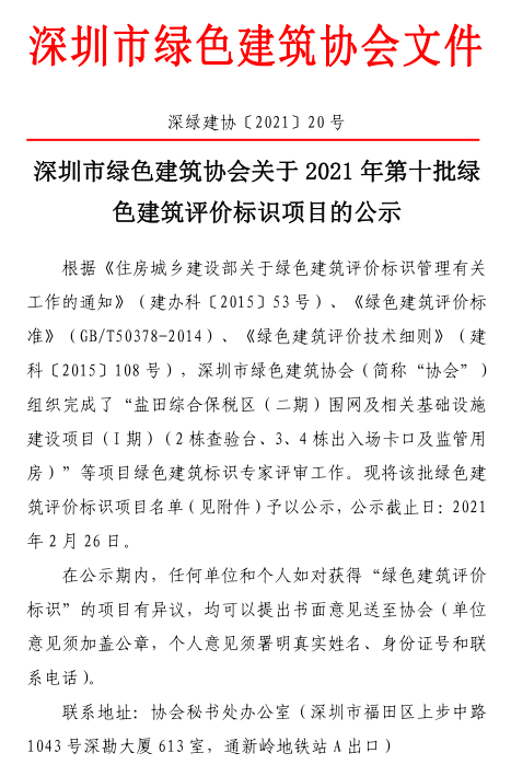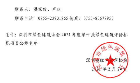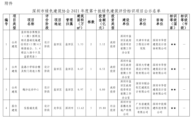 深圳市綠色建筑協(xié)會關(guān)于2021年第十批綠色建筑評價標(biāo)識項目的公示