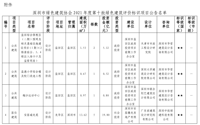 深圳市綠色建筑協(xié)會關(guān)于2021年第十批綠色建筑評價標識項目的公告