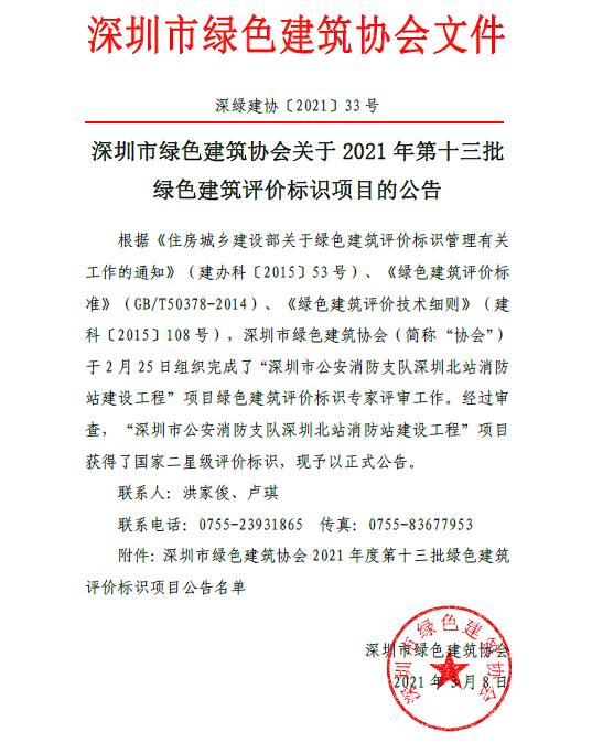 深圳市綠色建筑協(xié)會(huì)關(guān)于2021 年第十三批 綠色建筑評(píng)價(jià)標(biāo)識(shí)項(xiàng)目的公告