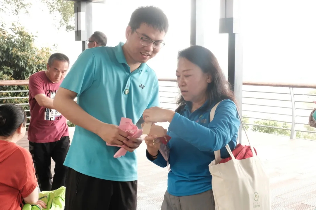 工作人員先后兩次踩點,安排合理路線,并在途中精心設置深山尋寶游戲環(huán)節(jié)。大家人手一份“藏寶圖”,尋寶、答題、換獎品……不亦樂乎。