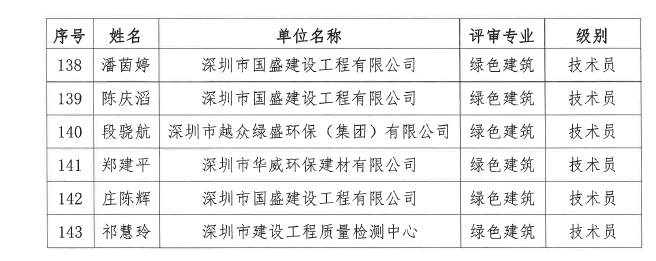 2020年度深圳市綠色建筑專業(yè)高級(jí)職稱評審委員會(huì)中、初級(jí)評審?fù)ㄟ^人員公示
