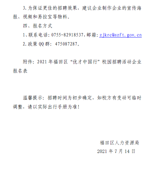 深圳市福田區(qū)人力資源局開展2021年福田區(qū) “優(yōu)才中國行” 校園招聘活動