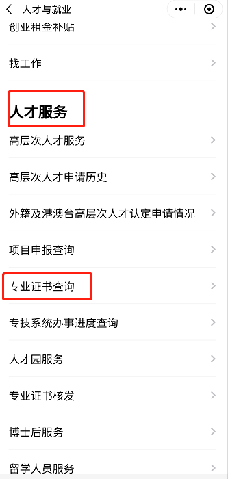 2、人才服務(wù)-專業(yè)證書(shū)查詢