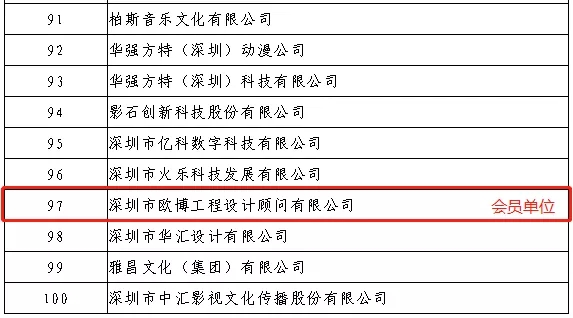 為進一步推動文化產(chǎn)業(yè)各領(lǐng)域領(lǐng)軍企業(yè)發(fā)展,更好發(fā)揮領(lǐng)軍企業(yè)的示范帶動作用,推動深圳文化產(chǎn)業(yè)高質(zhì)量發(fā)展 ,深圳市文化廣電旅游體育局于近日發(fā)布“深圳文化企業(yè)100強(2020-2021)”名單。協(xié)會副會長單位——深圳市建筑設(shè)計研究總院有限公司、深圳市華陽國際工程設(shè)計股份有限公司、香港華藝設(shè)計顧問(深圳)有限公司、深圳市杰恩創(chuàng)意設(shè)計股份有限公司、奧意建筑工程設(shè)計有限公司;理事單位——深圳華森建筑與工程設(shè)計顧問有限公司;會員單位——艾奕康設(shè)計與咨詢(深圳)有限公司、梁黃顧建筑設(shè)計(深圳)有限公司、深圳市歐博工程設(shè)計顧問有限公司等共9家企業(yè)入選“深圳文化企業(yè)100強(2020-2021)”名單。