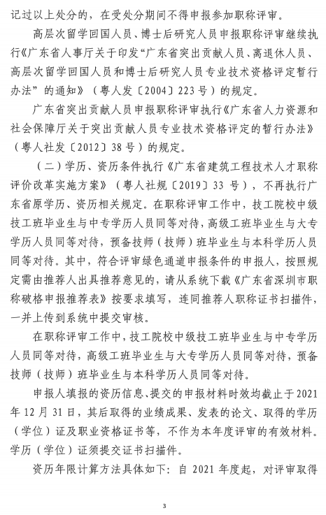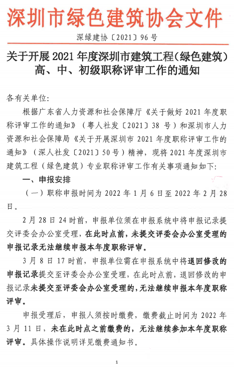 關(guān)于開(kāi)展2021年度深圳市建筑工程(綠色建筑)高、中、初級(jí)職稱評(píng)審工作的通知