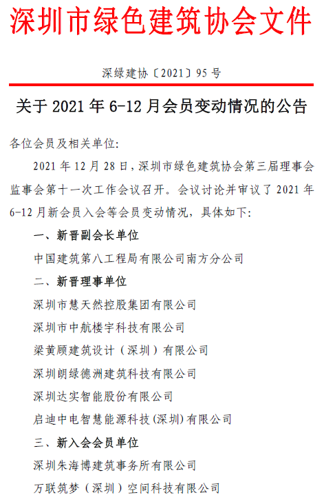 下一條:深圳市綠色建筑協(xié)會關于2022年度第一批綠色建筑評價標識項目的公告