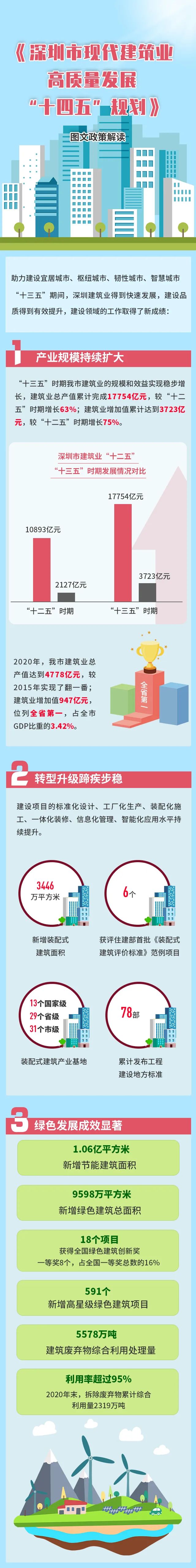 “十三五”期間深圳建筑業(yè)取得了哪些成績?到2025年現(xiàn)代建筑業(yè)高質(zhì)量發(fā)展的總體目標(biāo)是什么?帶你一圖讀懂!