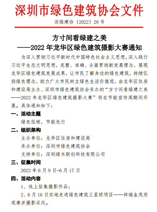 方寸間看綠建之美——2022年龍華區(qū)綠色建筑攝影大賽通知