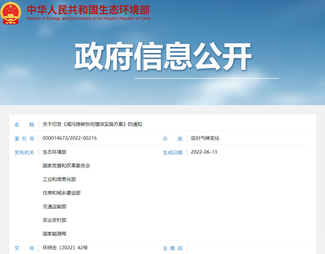 關(guān)于印發(fā)《減污降碳協(xié)同增效實(shí)施方案》的通知