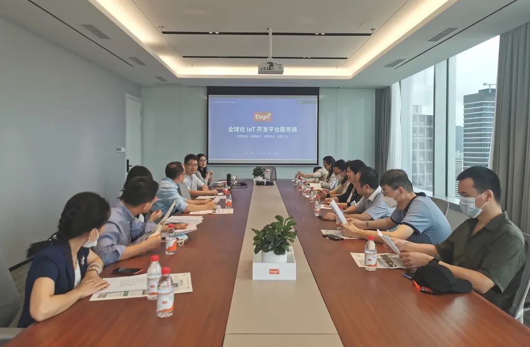 7月7日,深圳市綠色建筑協(xié)會(簡稱“協(xié)會”)開展會員互訪活動,協(xié)會黨支部書記、秘書長王向昱率隊走訪理事單位涂鴉智能,涂鴉智能中國區(qū)智慧能源業(yè)務(wù)負(fù)責(zé)人魏文崧、中國區(qū)業(yè)務(wù)市場負(fù)責(zé)人衛(wèi)姝卿給予熱情接待。招商蛇口產(chǎn)業(yè)園、杰恩設(shè)計、博普森機(jī)電、中建一局華南公司、華鏈軟件集團(tuán)、艾比森光電、星際睿安等會員單位代表及秘書處工作人員參加交流活動。