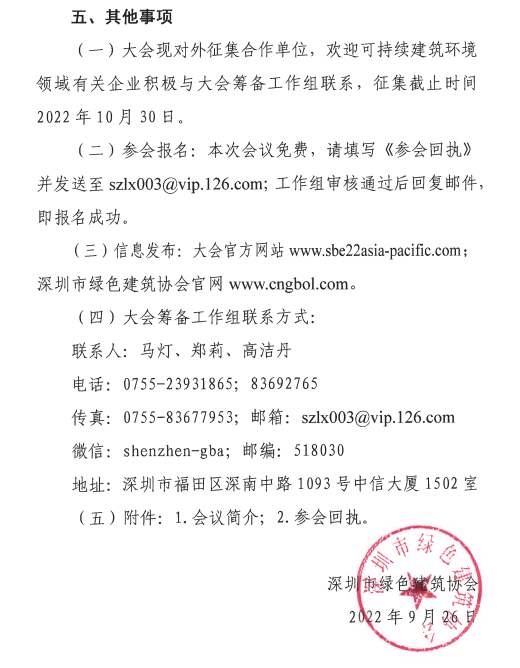 關(guān)于召開“2022年可持續(xù)建筑環(huán)境亞太地區(qū)會議”的預(yù)通知
