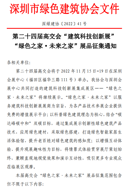 第二十四屆高交會“建筑科技創(chuàng)新展”“綠色之家·未來之家”展品征集通知