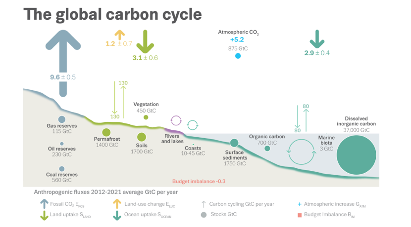 圖|全球人為活動(dòng)引起碳循環(huán)示意圖