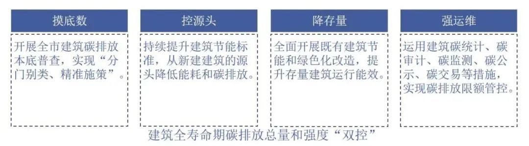 從“摸底數(shù)、控源頭、降存量、強(qiáng)運(yùn)維”方面建立建筑全壽命期碳管控,運(yùn)用建筑碳統(tǒng)計(jì)、碳審計(jì)、碳監(jiān)測(cè)、碳公示、碳交易等措施,實(shí)現(xiàn)碳排放限額管控。