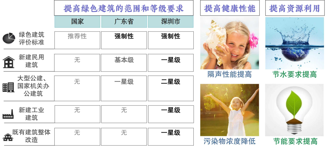 ● 2022年發(fā)布實(shí)施《深圳經(jīng)濟(jì)特區(qū)綠色建筑條例》,在全國(guó)首度將包括工業(yè)建筑在內(nèi)的全部建筑納入綠色建筑標(biāo)準(zhǔn)建設(shè)和運(yùn)營(yíng)的強(qiáng)制范圍;首次以立法形式規(guī)定了建筑領(lǐng)域碳排放控制目標(biāo)和重點(diǎn)碳排放建筑名錄,將“碳達(dá)峰、碳中和”融入綠色建筑全壽命期管控;對(duì)建筑綠色性能提出更高要求,切實(shí)提高百姓對(duì)綠色建筑的獲得感和體驗(yàn)感。