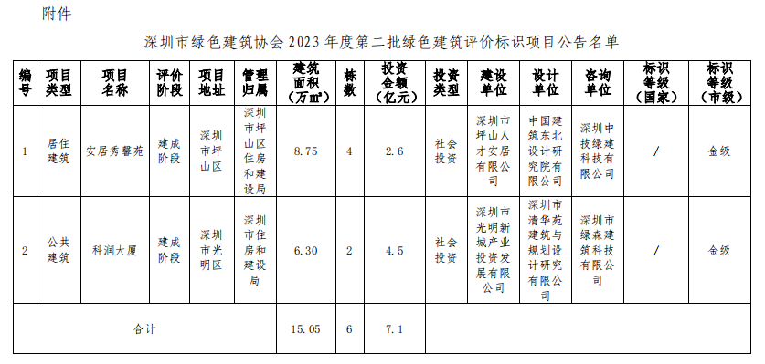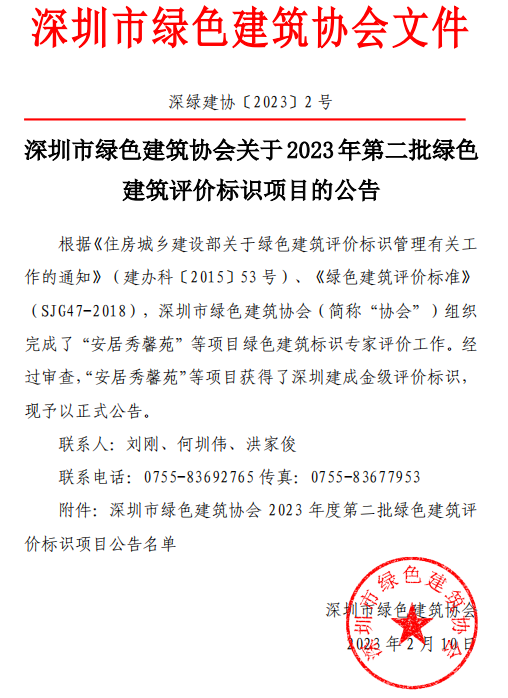 深圳市綠色建筑協(xié)會關于2023年第二批綠色建筑評價標識項目的公告