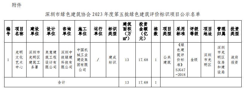 深圳市綠色建筑協(xié)會關(guān)于2023年第五批綠色建筑評價標識項目的公示