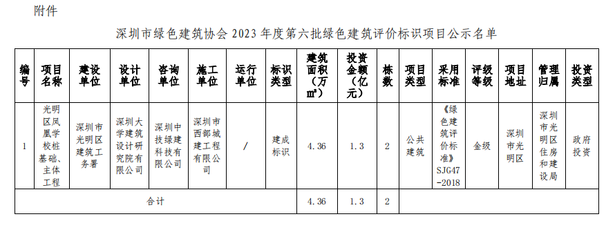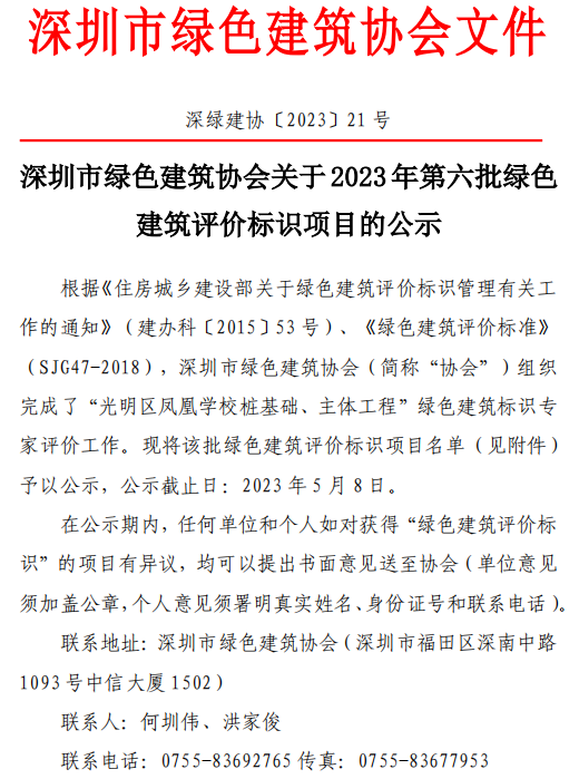 深圳市綠色建筑協(xié)會(huì)關(guān)于2023年第六批綠色建筑評(píng)價(jià)標(biāo)識(shí)項(xiàng)目的公示