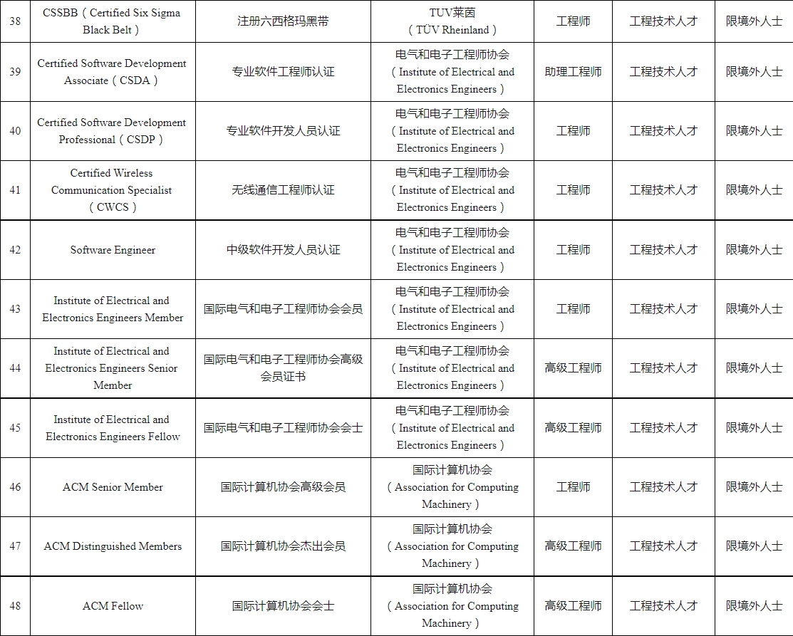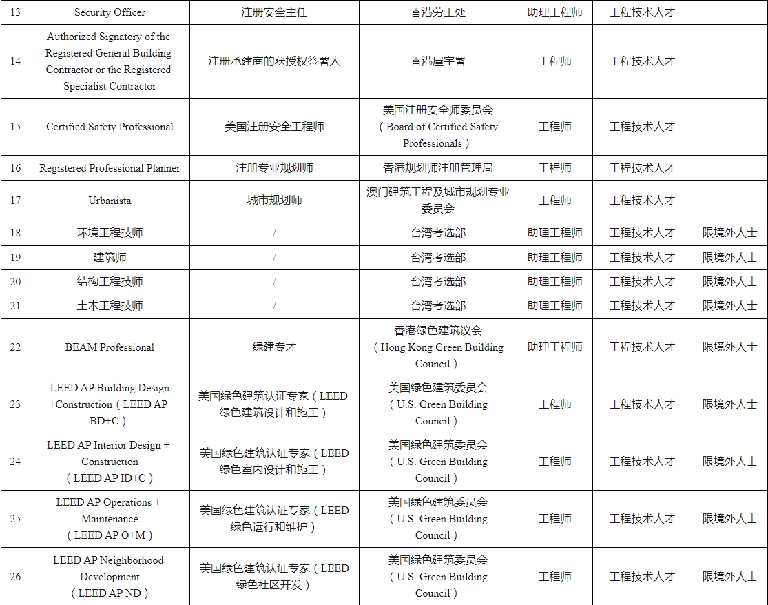 深圳市國際職業(yè)資格視同職稱認可目錄(2023年)