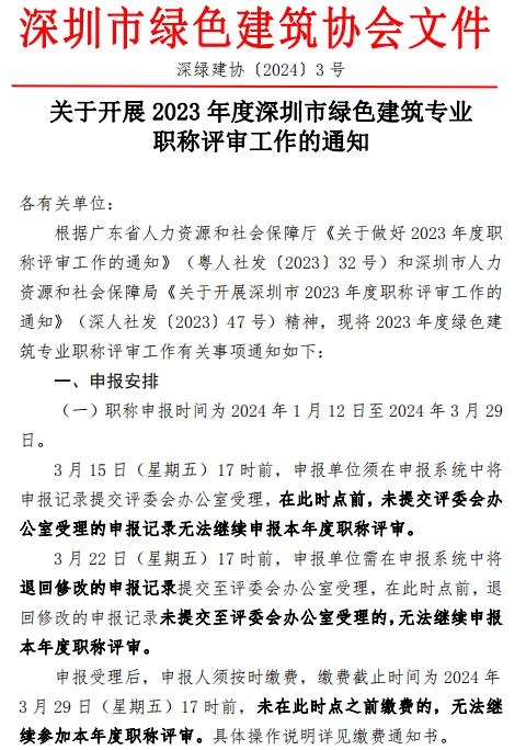 關(guān)于開展2023年度深圳市綠色建筑專業(yè)職稱評(píng)審工作的通知