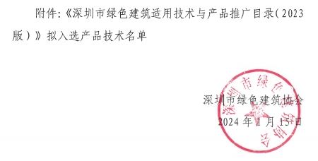 《深圳市綠色建筑適用技術(shù)與產(chǎn)品推廣目錄(2023版)》擬入選產(chǎn)品技術(shù)名單公示