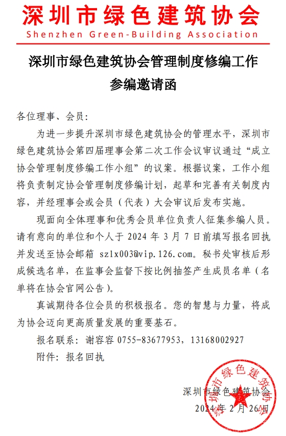 深圳市綠色建筑協(xié)會管理制度修編工作參編邀請函