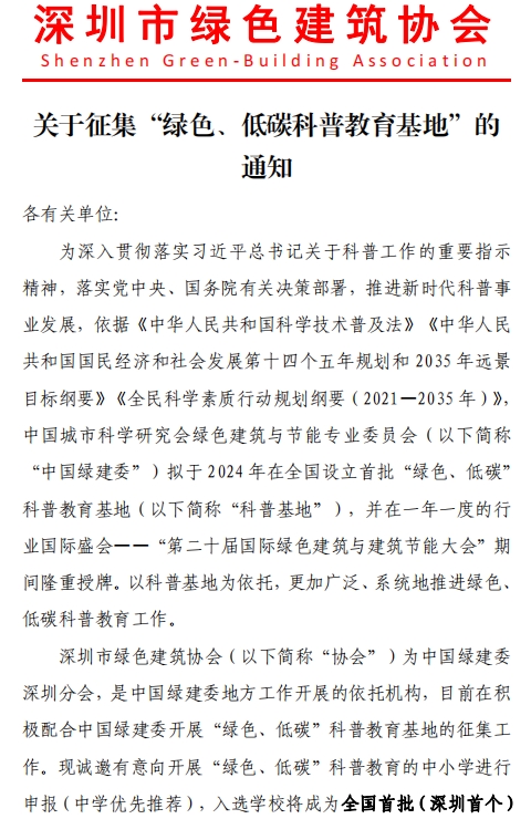 關(guān)于征集“綠色、低碳科普教育基地”的通知