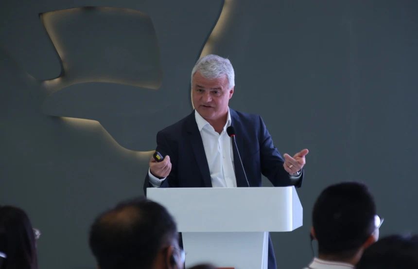 深圳市深能南部生態(tài)環(huán)保有限公司執(zhí)行董事兼總經(jīng)理曲文浩介紹南山能源生態(tài)園