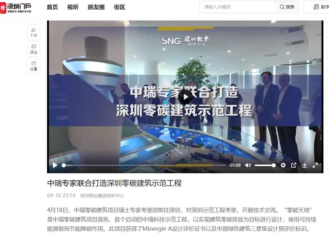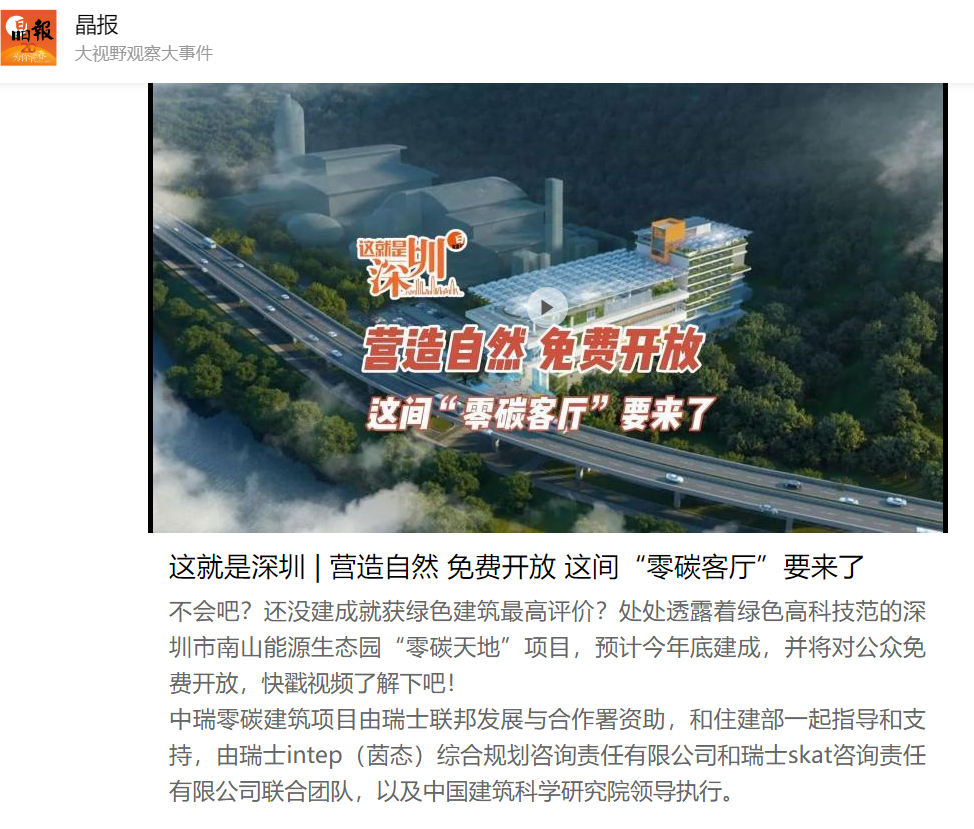 2020年中國住建部與瑞士聯(lián)邦外交部雙方簽署了“中瑞關(guān)于在建筑節(jié)能領(lǐng)域發(fā)展合作的諒解備忘錄”,在此備忘錄的框架下,雙方開展節(jié)能建筑及零排放建筑領(lǐng)域的合作與技術(shù)交流。2022年4月12日,國家住建部批復(fù)三個中瑞零碳建筑合作示范項目,在深圳市住房和建設(shè)局、深圳市綠色建筑協(xié)會的共同推動下,“南山能源生態(tài)園零碳天地”項目(以下簡稱“項目”)成功入選,成為首批三個示范項目之一。