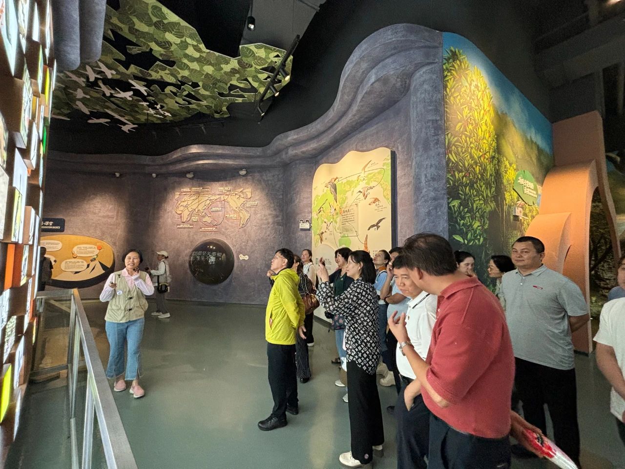 隨后,在紅樹林基金會(huì)志愿者的帶領(lǐng)和講解下,各組織代表走進(jìn)生態(tài)公園科普展館,了解深圳紅樹林生態(tài)系統(tǒng)的概況及遷飛候鳥的相關(guān)知識(shí),追溯深圳自改革開放以來的紅樹林濕地保護(hù)史。