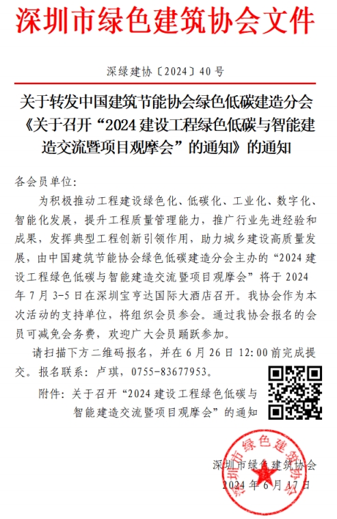 附件:中國建筑節(jié)能協(xié)會綠色低碳建造分會關于召開“2024 建設工程綠色低碳與智能建造交流暨項目觀摩會”的通知