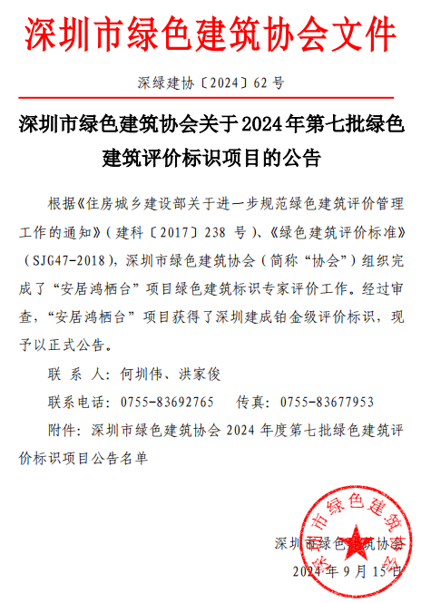 深圳市綠色建筑協(xié)會關(guān)于2024年第七批綠色建筑評價標(biāo)識項目的公告