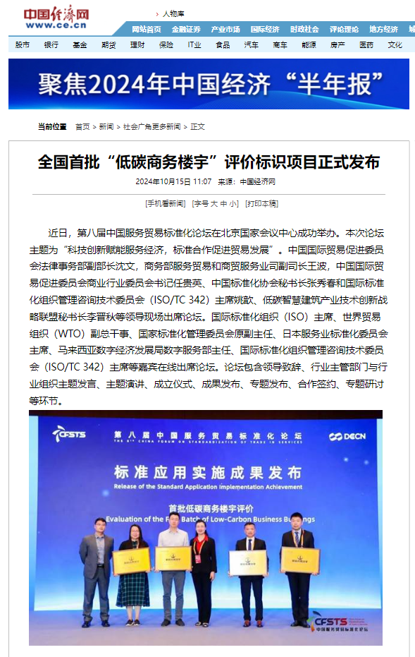 近期,全國首批“低碳商務樓宇”評價標識項目正式發(fā)布,獲得中國經(jīng)濟網(wǎng)、新華社等兩家國家權威媒體的關注和報道。