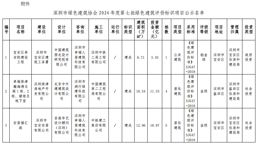 深圳市綠色建筑協(xié)會關(guān)于2024年第七批綠色建筑評價標(biāo)識項(xiàng)目的公示